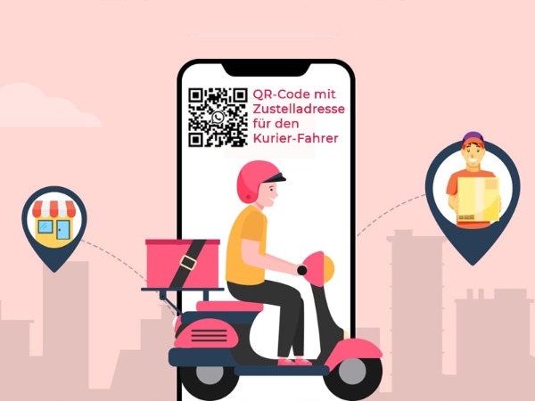 Das Bestellsystem mit Lieferfunktion und QR Code für Google Map für den Kurierfahrer. mit dem