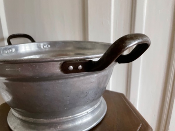 Abtropfsieb / Salatsieb mit geschwärzten Griffen ca 1930, in gutem Zustand.