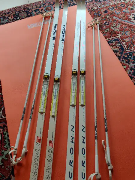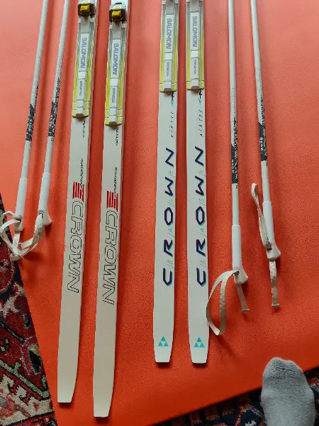 . Die Skis verfügen über eine Salomon Langlauf Bindung. Sie sind in einwandfreiem Zustand