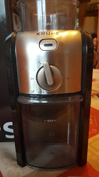à café Krups GVX 2 expert avec sélecteur de finesse de mouture 17 positions, réservoir grande capacité et couvercle de sécurité pour les vrais amateurs de café en grains torréfiés dans sa boite d'origine