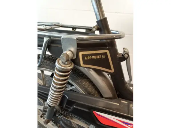 Alpa mit dem E50 Puchmotor. Alles noch original, kein Rost und keine Beulen im Tank. Jahrgang 1979 mit nur 5128 Km! ! Es wurde nur bis 1988 gefahren, das Nummernschild hat noch die