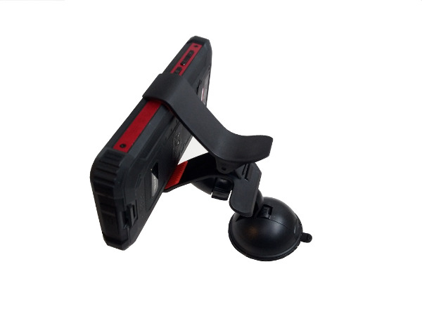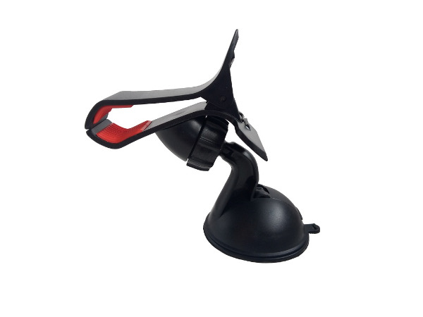 Diese Universalhalterung ist 360 ° drehbare und verspricht festen Halt an der Scheibe durch den Saugfuss. Die rote Silikonfläche bietet Schutz vor Kratzern am