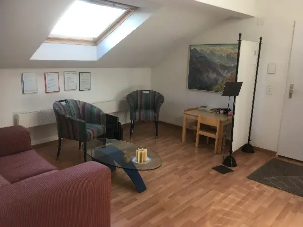 Praxisraum mit Garderobe und Wartezimmer, 45m2. 3-4 d/W, geeignet für Psychotherapie (Anordnung Langzeitpatienten möglich) , Coaching, Beratungen, Ergotherapie, etc.. 2.Stock, kein Lift. CHF 590.- exkl. Ab sofort od. nach Vereinbarung. Keine Teilvermietung.