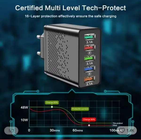 Olaf 68W 5 Ports USB Ladegerät Adapter