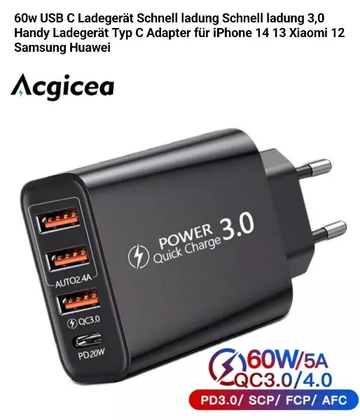 Feature 1: USB C Charger /PD Charger /Quick Charge