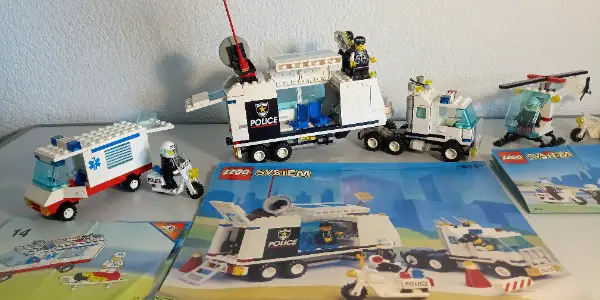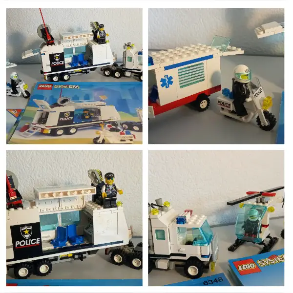 Unsere Bausätze umfassen Autos, Polizeifahrzeug, Polizeimotorrad, ein Polizeiboot, ein