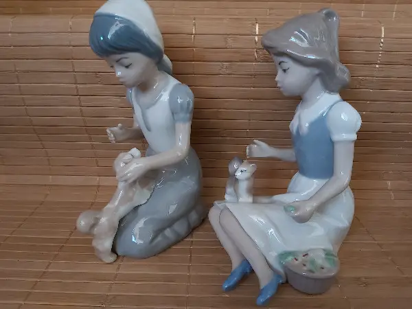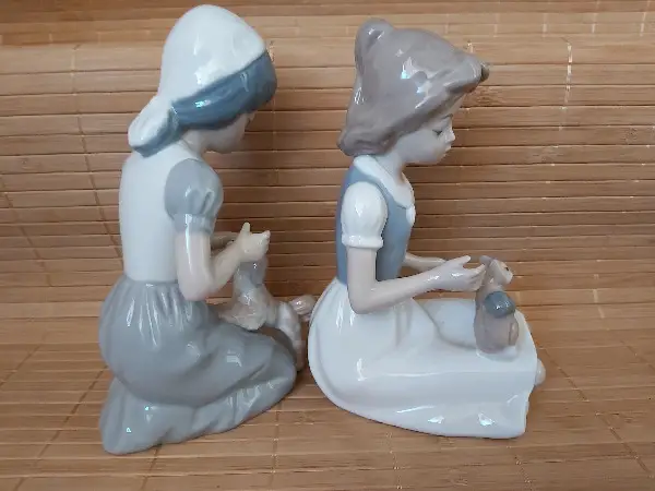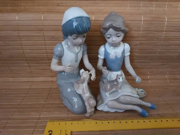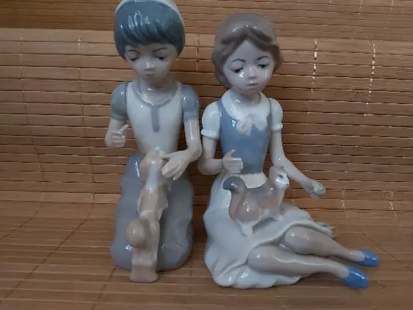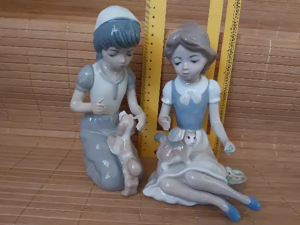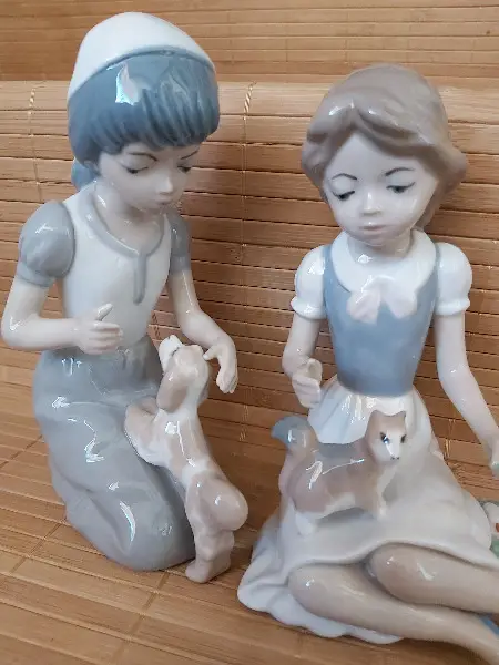 Vintage, spanisches Porzellan, Mädchen+Hund, Mädchen + Katze