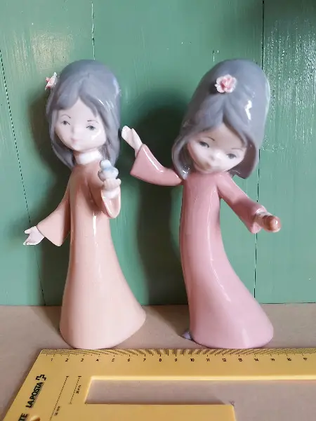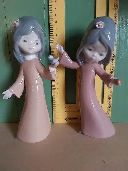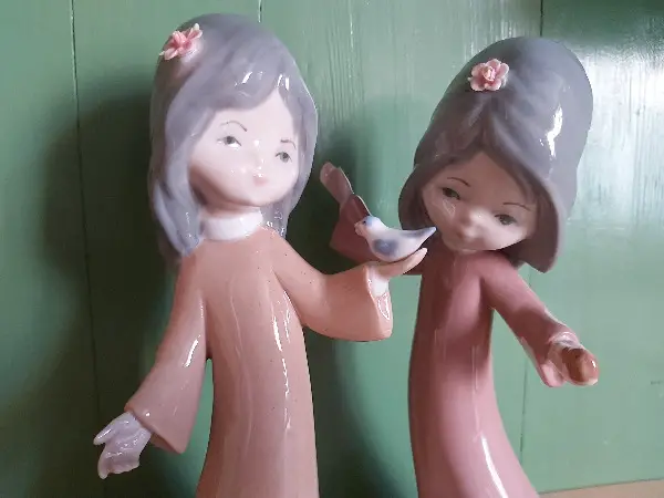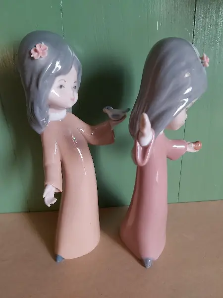 Vintage, spanisches Porzellan, Mädchen Blume im Haar, Vogel