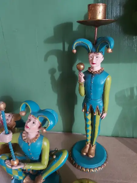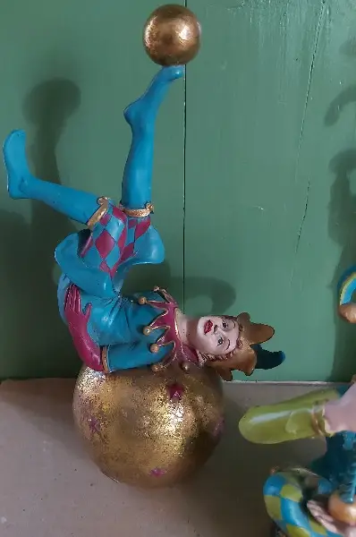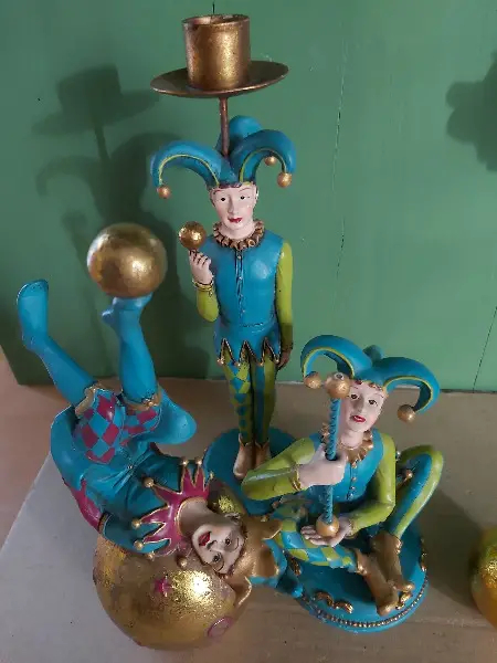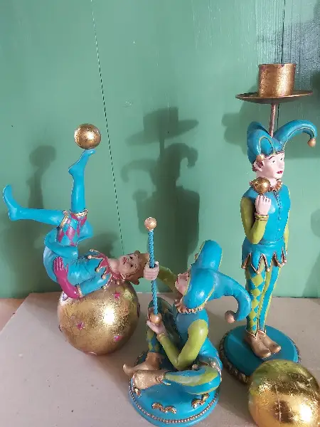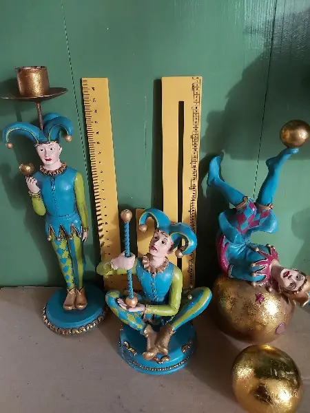 ca. 26.5cm Kerzenständerfigur, ca. 15.5 sitzende Figur, ca. 22cm auf Kugel liegender Figur (bis zum