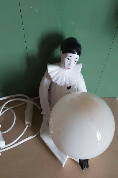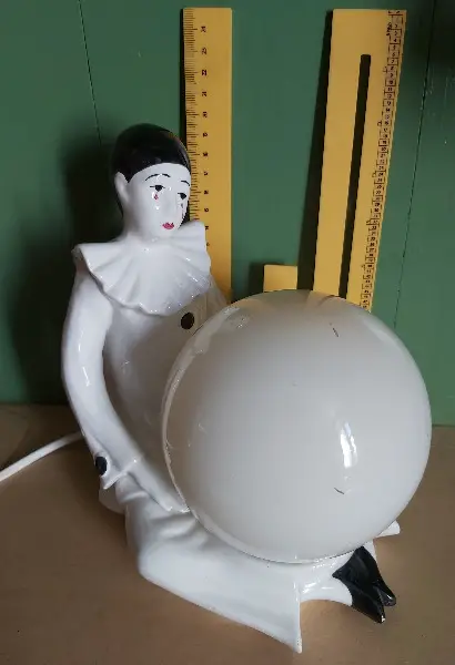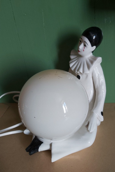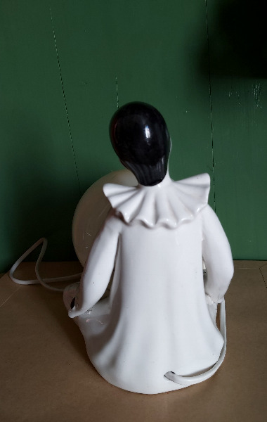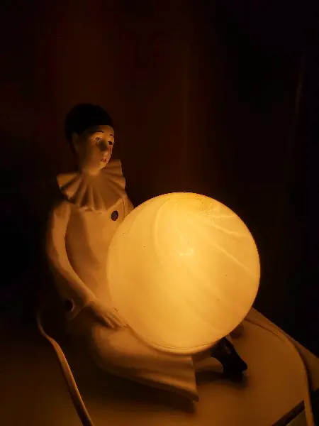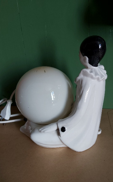 Vintage Tischlampe, trauriger, weinender Harlekin, Kugel