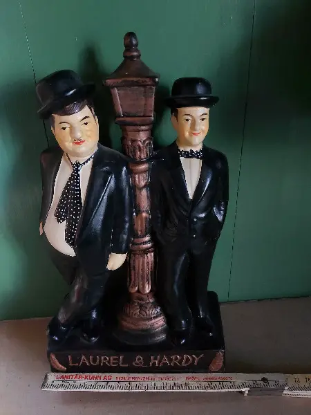 Lässige Dekofiguren. "Dick & Doof / Laurel & Hardy". Im älteren Zustand, mit Gebrauchsspuren (siehe Fotos: ranzoomen- fällt nicht gross auf, finde ich) .