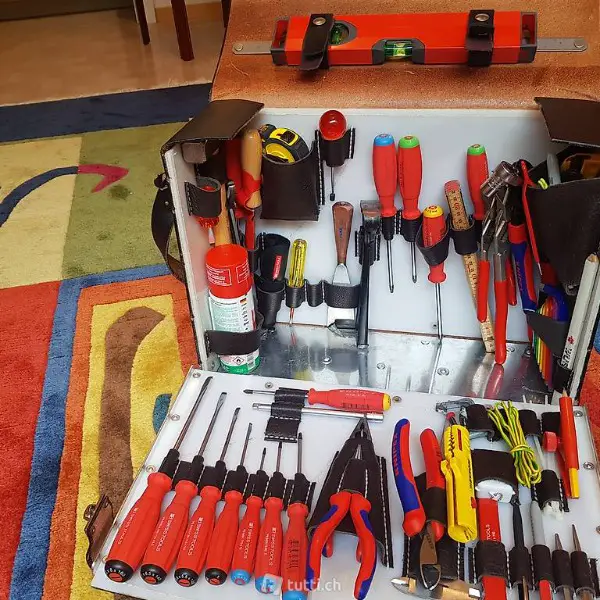 Verlaufe eine in der Schweiz produzierte Werkzeugtasche aus Leder.