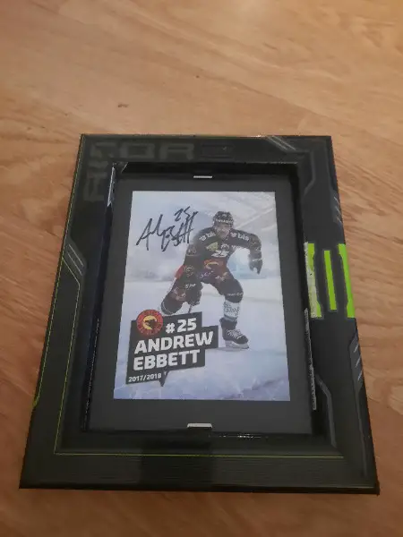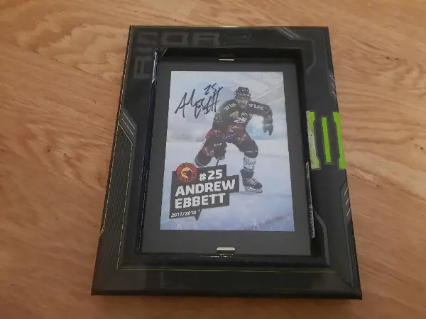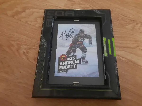 Autogrammkarte mit Rahmen aus Eishockeystock! !!