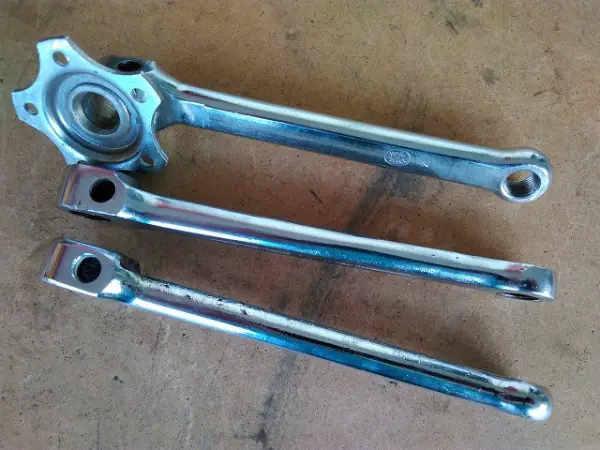 Original Oldtimer Kurbelsatz von Solida. Rechte Pedal Kurbel ist neu, nie gebraucht! Länge 195mm.Lochgewinde für Pedale Ø 9/16 Der Pedalarm Links ist ebenfalls ein Original von Solida und gehört dazu, Länge 195mm, Lochgewinde Ø 9/16.Leider ist der Chrom etwas abgefallen! Als Alternative biete ich einen ähndlichen Linken Pedalarm dazu, der auch passt! Länge 195mm, Lochgewinde Ø 9/16.Montage der Pedalarme mit Kurbelkeile. Abholung vor Ort Vorkasse! Postversand möglich.