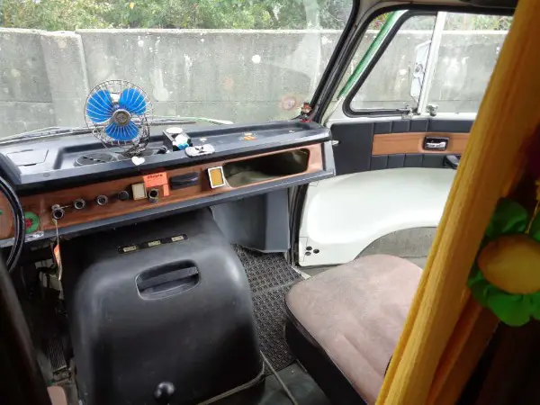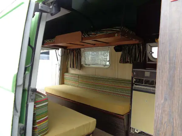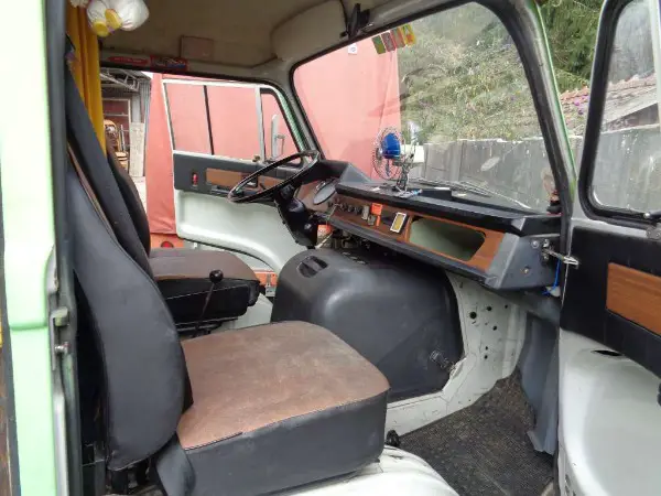 Der Innenausbau ist komplett und original vorhanden, sowie ausgebaut (Vorhänge, Fenster, Polster, Kissenüberzüge,