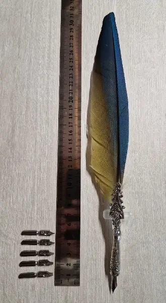 Kalligraphie Schreib Feder mit Echter Ara Feder.