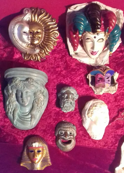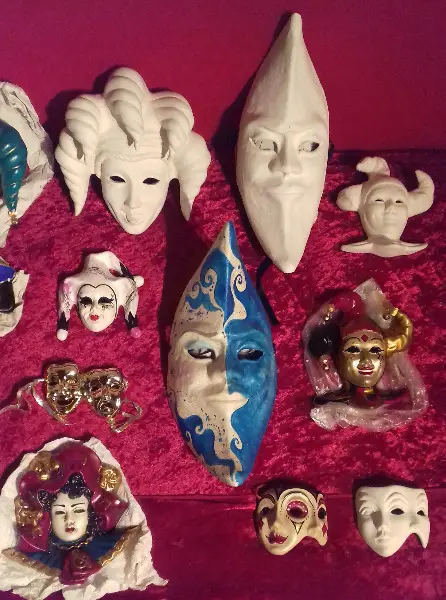 Einzigartige Kunstmasken, auch selbstbemalte und selbstgegossene Unikate.