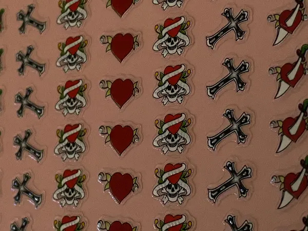 50 tolle Gothic Motive mit feinem Glitzereffekt. Die Motive einfach von der Karte abziehen und auf den gereinigten Nagel (muss fettfrei und sauber sein) kleben. Um die Haltbarkeit zu verlängern, mit Klarlack versiegeln. Die Motive sind transparent und zur besseren Darstellung auf dem Bild vor einem dunklen Hintergrund.