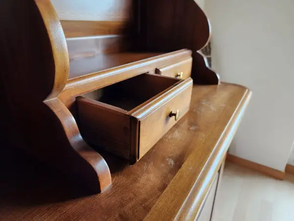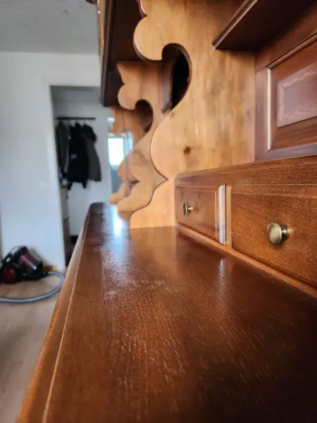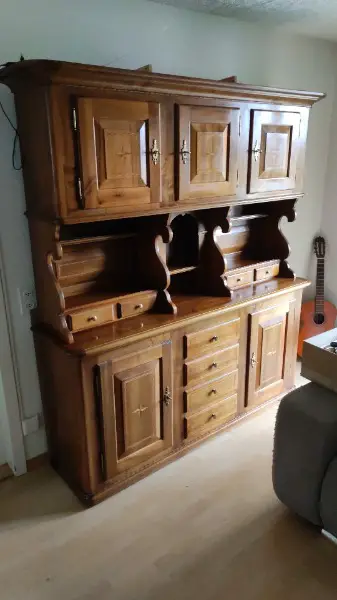 Auf der Oberfläche sind schwache Gebrauchsspuhren sichtbar. Ansonsten in perfektem Zustand. Alle Türen funktionieren einwandfrei. Keine Schulblade klemmt!