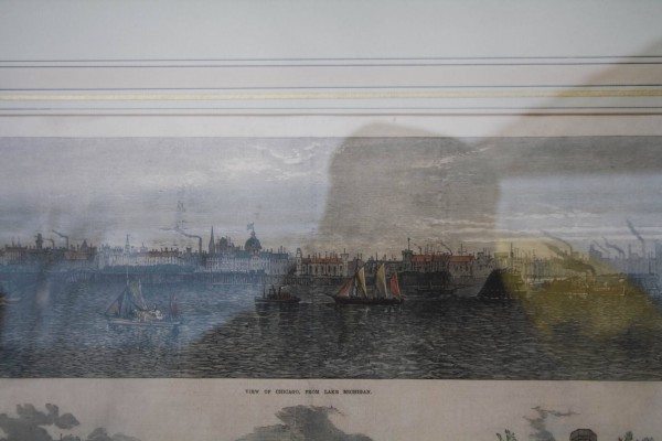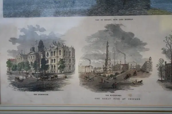 Die Feuersbrunst in Chicago. Echter alter Stich, coloriert, Masse: 52/42cm. Der Rahmen ist echt Blattgold. Wir haben unser traditionsreiche