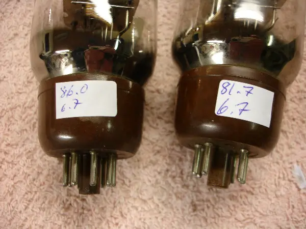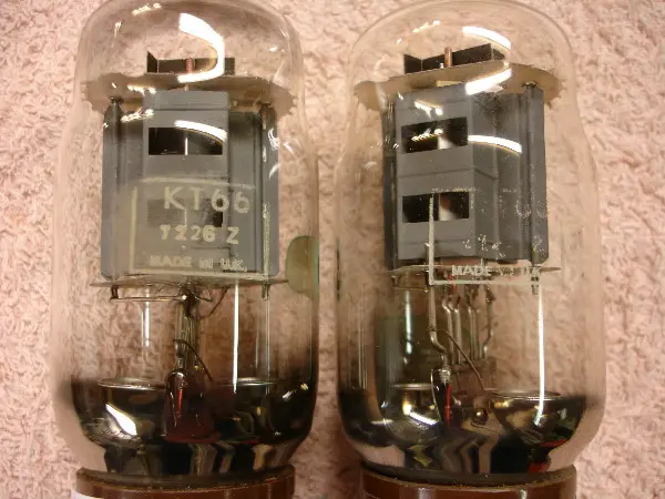 Ein Paar GEC KT66, mit sehr guten Messwerten, weit über 100% (siehe Bilder) .