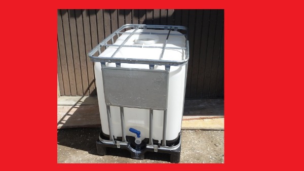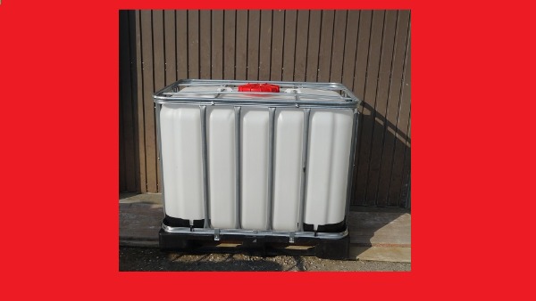 600 Liter Wassertank auf Kunststoffpaletten mit grosse Deckel für