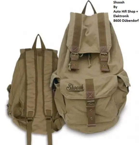 Shoosh Canvas Backpack Rucksack, 100% Canvas soft, Farbe khaki, Eco friendly, 38x23x50cm