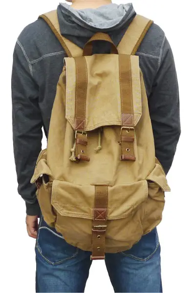 Wichtigste Fakten in Kurzübersicht Hochwertiger Canvas-Rucksack mit viel Stauraum. Masse: 38 x 23 x 50cm Farbe: khaki