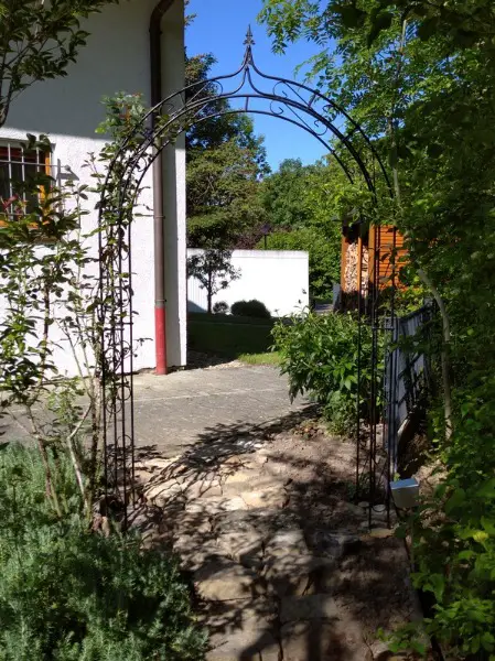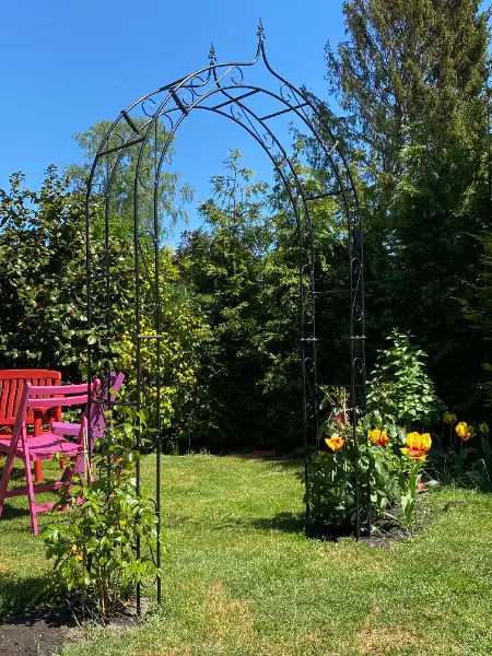 Achtung! Ein rostiger Rosenbogen kann abfärben!