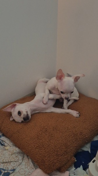 Einer ist ein Mädchen, der andere ein Junge. Beide sind Mini, wiegen ungefähr 500 Gramm und sind 3 Monate alt.