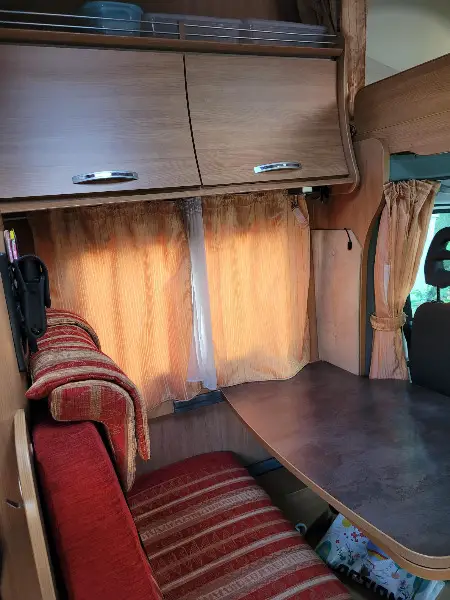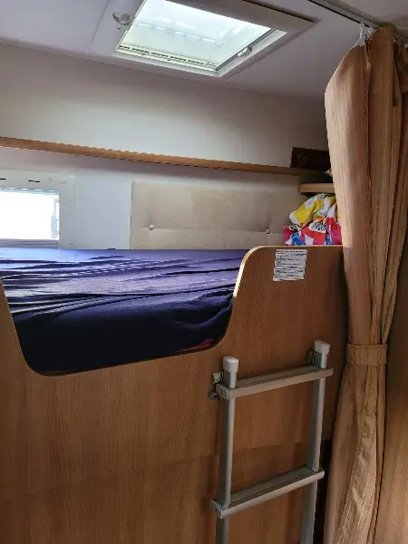 • 4 places carte grise mais 5 couchages (lit double dans la capucine, 2 lits superposés à l'arrière, lit d'appoint enfant dans l'espace repas