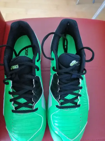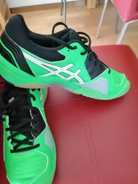 Biete infolge gesundh. Gründen diesen Schuh. Er wurde nur 1 Std. getragen und ist wie NEU! Asics Gel-Domain 3 E415Y-7001 Herren-Verkaufe Hallenschuh. Ideal für Badminton, Handball Volleyball Sport. Farbe: neongrün, Gr.: 42.5 Der Schuh bietet ein optimales Verhältnis zwischen Beweglichkeit, bester Dämpfung und hoher Stabilität. So fördern die Gel-Pads im Fersen- und Vorfussbereich sein Dämpfungsverhalten, während der WET GRIP RUBBER besonders auf feuchtem Hallenbelag sicheren Bodenkontakt gewährleistet. Die dämpfende Zwischensohle ermöglicht komfortables Abstoppen und Aufkommen nach dem Sprung. (Preise im Handel über 70.- Euro) Postversand ist inkl.