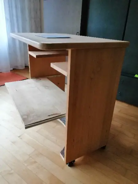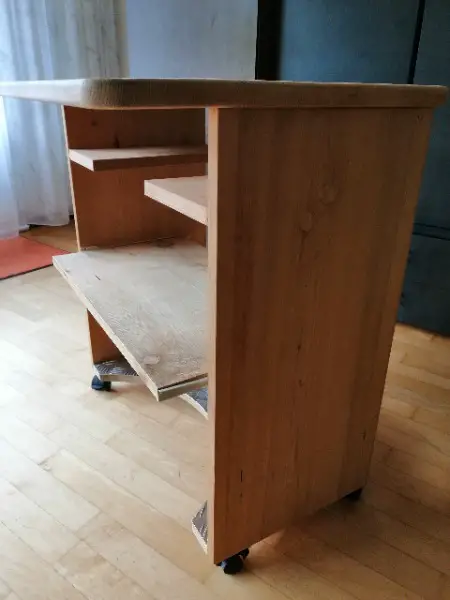 Handgefertigtes Computermöbel aus Holz.