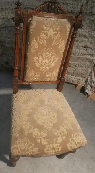 Die 6 Stühle sind in gutem Zustand. Der Stoffüberzug der 6 Stühle ist nicht in gutem Zustand