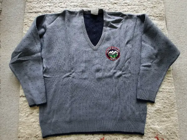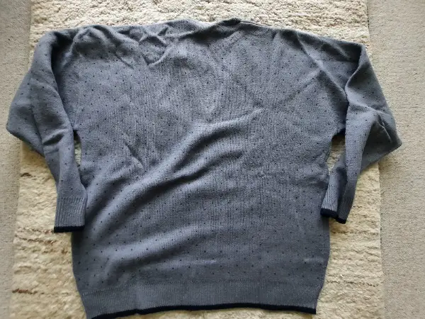 Pullover ist blau-grau, fast neu, kaum gebraucht, keine Abnutzungserscheinungen.