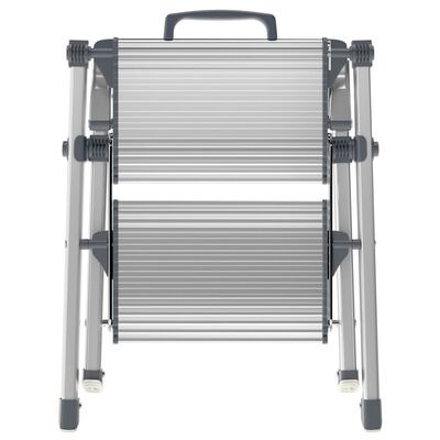 Diese kleine und kompakte Stufenleiter verfügt über 2 grosse Stufen mit Anti-Rutsch-Riffelung für optimalen Stehkomfort und passt in jede Ecke. Die rutschfesten Füsse aus