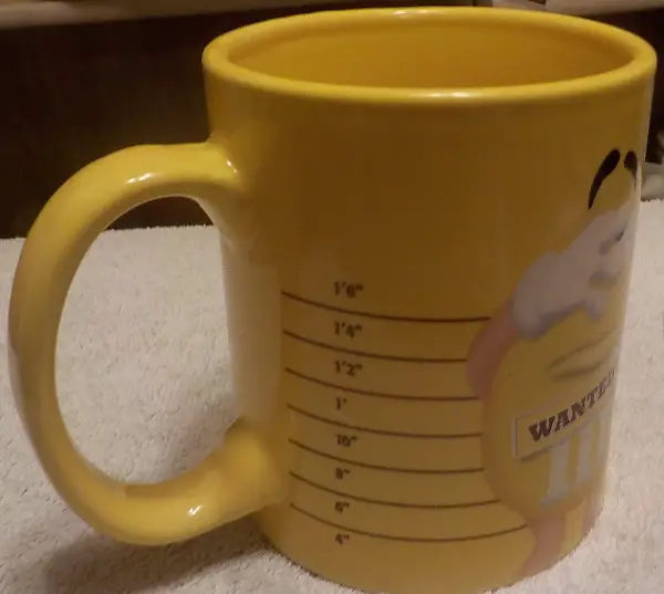 M&M`s Tasse, Becher / Gelbe März-Kollektion / Keramik / Durchmesser 8cm / Höhe 9,5 cm / nicht gebraucht / stand in der Vitrine / Top Zustand / ohne Originale Verpackung / von 2013 /
