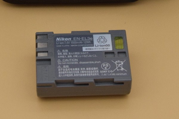 Livraison avec batterie usagée, SANS chargeur, SANS objectif, couvercle avant blanc.