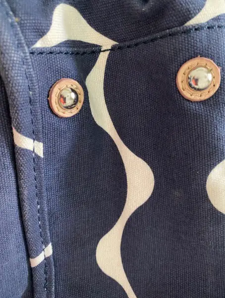 Reissverschluss. Geschlossen wird die Tasche mit einem Magneten.