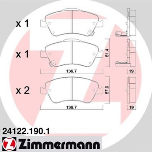 4x ZIMMERMANN Bremsbeläge 2411.190.1