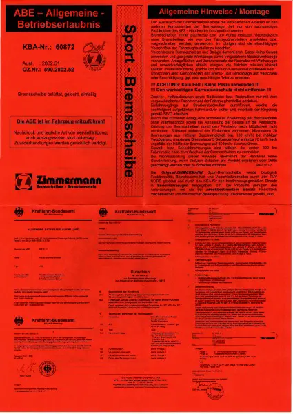 Coat-Z beschichtet, hochgekohlt, Innenbelüftet, Gelocht. Inklusive ABE Betriebserlaubnis.