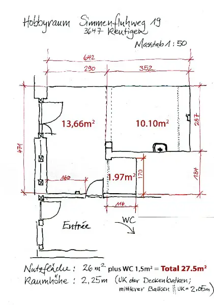 - Nutzfläche: 26m2 plus WC und kleine Garderobe 2m2 = Total 28m2