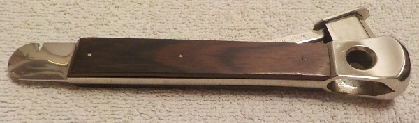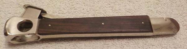 Zigarrenabschneider aus den 50er Jahren / Marke: Pfeilring Solingen Deutschland in OVP / im sehr gutem Zustand / Handgriff ist beidseitig mit Palisander Edelholz versehen / Zigarrenschneider aus verchromtem Edelstahl ein Edelstück für Sammler / Masse in ca.: Länge 15cm Breite mit Clipper 4cm ohne Clipper 1.9cm T Eingraviert: Solingen, 5650 D.B.G.M (ist eine Deutsche Patendangabe) / dies ist ein Gebrauchsartikel und hat ganz wenig Gebrauchsspuren / OVP hat Lager und gebrauchspuren