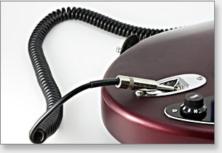 Asymmetrisches Instrumenten-Kabel mit 1 x Winkel-Plug 6,35 mm und 1 x Plug 6,35 mm, beide mono mit einem vergoldeten und einem vernickelten Kontakt.
