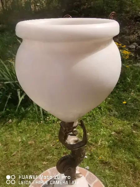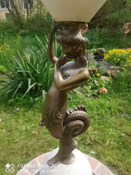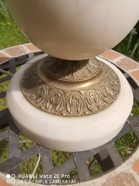 Tischlampe. Sie ist ca. 68 cm hoch und die Kugel hat einen Durchmesser von ca 18 cm. Im Innern hat es einen Bajonettsockel mit der entsprechenden Birne. Weitere Ersatzbirnen werden mitgegeben