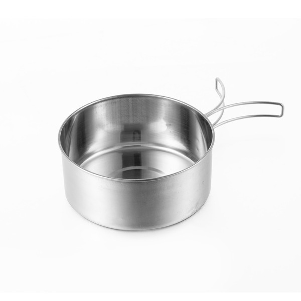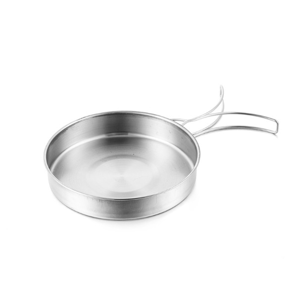 Teller, 2 Becher und einem Beutel. Das Geschirr ist leicht und kann ineinander gestappelt werden. Dank der einklapparen Griffe an den Töpfen, kann das Campinggeschirr platzsparend verstaut werden.