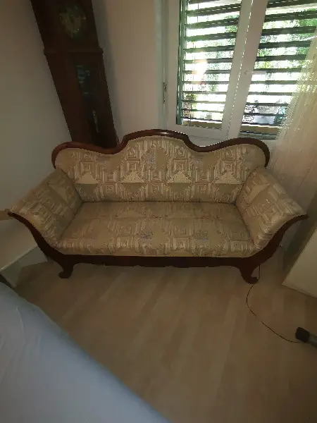 ist ca. 185 cm breit, 78 cm tief und 100 cm hoch. Es wurde total restauriert und es hat selten jemand darauf gesessen.