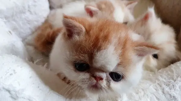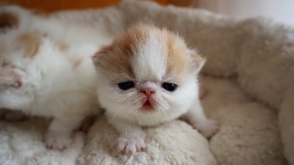 Harlekin, 2 Exotic Shorthair Buben, rot- und creme-weiss Harlekin.