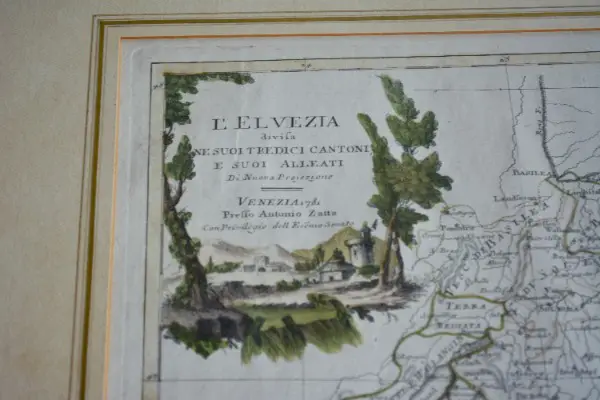 Verkaufe eine antike Landkarte L’Elvezia mit goldenem Rahmen. Die Landkarte stammt aus einem gepflegten Nichtraucherhaushalt und ist in schönem Zustand.