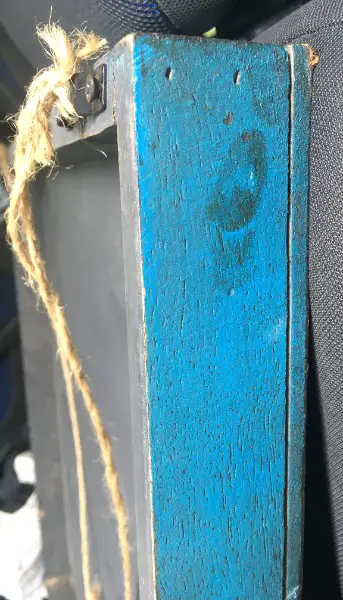 Kann an 2 Haken auf der Rückseite oder an der Schnur aufgehängt werden.